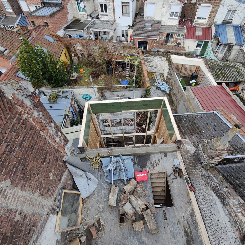 Projet : Extension de maison pour l’ajout de 3 pièces (2 chambres, séjour) et d’une terrasse sur le toit